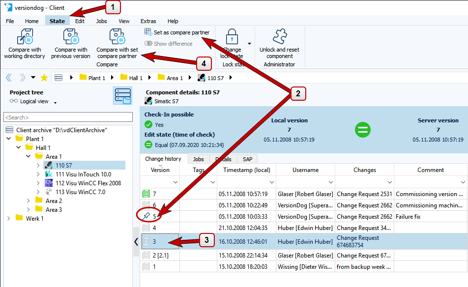 versiondog 可以创建并排显示的比较,以便您以易于理解的方式查看差异。您可以比较以下选项: